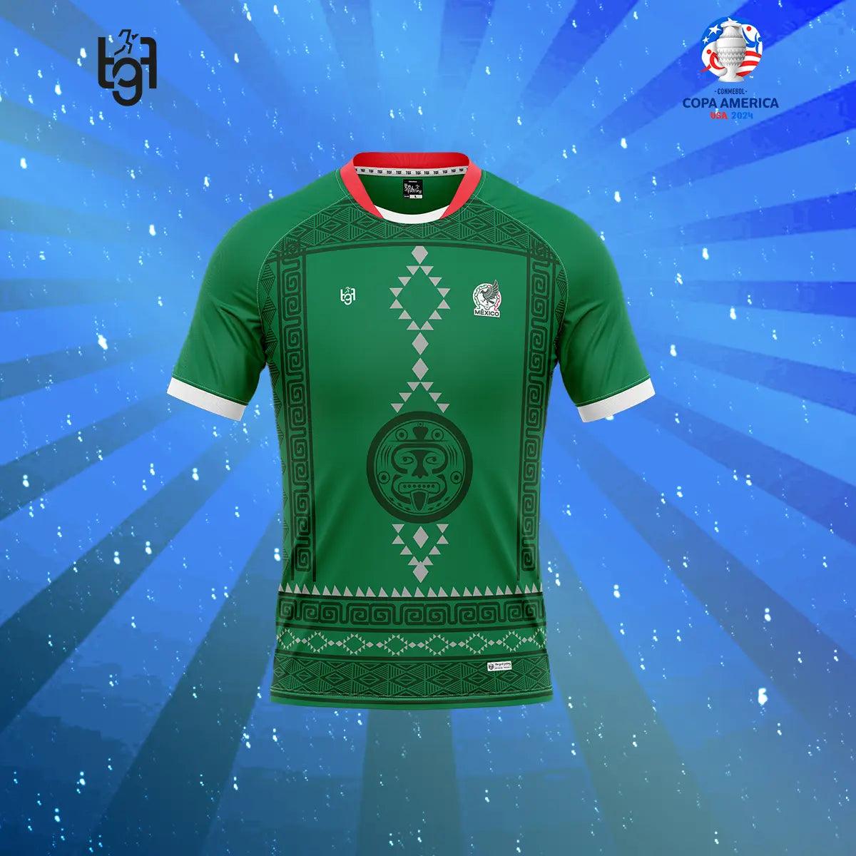 Introducing the TGF Limited Edition Mexico Jersey from the Copa America Collection. In green and white with a red collar, it embodies the spirit of Mexican football. Engineered for performance, it boasts a breathable back mesh for comfort. Adorned with national symbols, it's a badge of honor for fans. Join the Mexican football legacy with this stylish tribute.